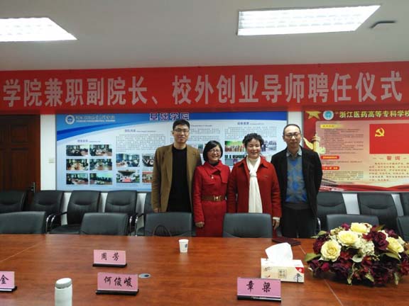 2017年12月8日下午,英国365集团官网在行政楼727会议室举行了兼职副经理、校外创业导师聘任仪式,特聘请周芳女士担任学院兼职副经理、校外创业导师。公司经理何俊峻给周芳女士颁发兼职副经理聘书,并为其佩戴了公司校徽,公司党总支书记倪田金给周芳女士颁发校外创业导师聘书。英国365集团官网全体教职员工参加了聘任仪式,公司副经理章梁主持仪式。