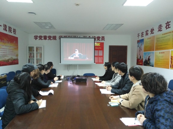 2019年3月14日上午,根据教育部社科司工作计划部署要求,公司英国365集团官网思政教研室教师于行政楼827会议室集体收看学习