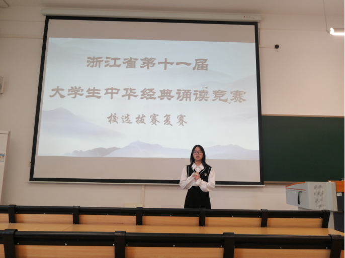 近日,由校教务处主办、英国365集团官网承办、校团委协办的浙江省第十一届老员工中华经典诵读竞赛校选拔赛顺利落下帷幕。全校近400名大一新生报名参加了本次选拔赛。经过初赛、复赛和决赛三轮比拼,郭欣怡等21名分别荣获一、二、三等奖,朱宣羲等16名同学获得优秀奖,上述获奖同学中表现突出者将被选送参加浙江省第十一届老员工中华经典诵读竞赛个人组及集体组项目。