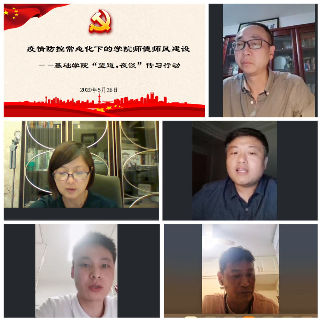 接着,3名党员教师代表——韦晨、黄紫华、马世栋老师谈了关于师德师风建设的个人感想。韦晨老师从宏观的角度畅谈了对师德师风的个人见解,分别从“以德立身、以德立学、以德施教、以德育德”四方面谈了感悟;黄紫华老师结合自身的本职工作,围绕疫情防控阶段线上教学工作谈了切身感受——众人抱薪,共建师德师风建设;马世栋老师针对此次疫情所带来的变革,谈了特殊时期师德师风建设的要点。