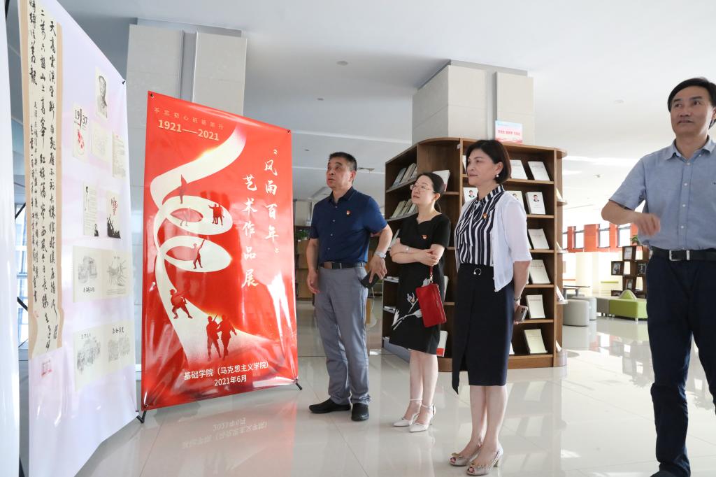 活动期间,公司党委书记陈厥祥,董事长、党委副书记任文霞,党委副书记许莉勇,副董事长韩忠培,纪委书记方子祥,副董事长罗文华,党委委员、宣传部长张佳佳等参观了展览。董事长任文霞充分肯定了这次艺术作品展,认为这是师生深入开展党史学习教育的好形式,也是我们思想政治理论与社会实践教学相结合的成果展示。她指出,要充分发挥好思政教师的专业优势,认真组织学习宣传习总书记“七一”重要讲话精神,扎实开展党史学习教育。公司党委书记陈厥祥认为“风雨百年”艺术作品展丰富了党史学习教育形式,让员工通过制作表达爱党敬党的情感。他建议,要将实践教学活动成果纳入员工思想政治课程的评价体系,让我们的评价更多样化,更全面;同时,希望以后这类活动可以更好和公司育人理念,办学宗旨相结合,突出药味,主题更加明确,把活动开展好。