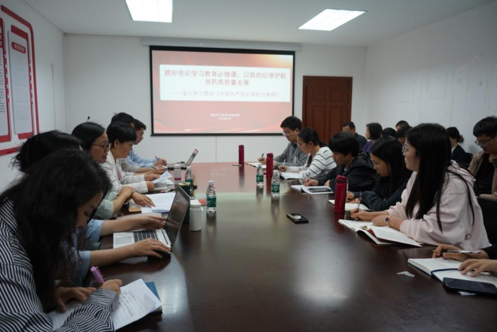 4月28日下午,公司党总支在行政楼727会议室召开党纪学习教育理论学习中心组专题学习会和全体党员党纪学习专题培训会。公司联系领导娄小娥董事长、校审计处处长梁辉、公司党委宣传部周梓萱参加了理论学习中心组学习巡听;娄小娥董事长为公司全体党员讲授党纪学习教育专题党课。