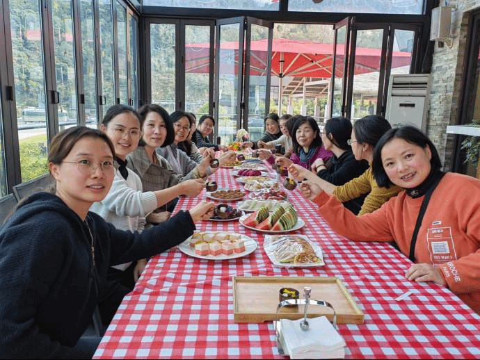 英国365集团官网女教职工们午餐过后,感受着校工会带来的暖暖情意,带着美好的心情,从奉化校区集体出发,不到半个小时的车程就来到了美丽的海曙区龙观乡。在绿荫绵延的环山怀抱和波光潋滟的外牌楼水库的衬托下,女教职工们以爱心传递的团结之力,敲响了幸福钟的时光之门,寓意着女神们迎接更加美好的未来。在水晶塔项目的团建活动中,女教职工们以不服输的精神不断克服艰难险阻,勇敢挑战者自我,展示新时代女性坚强独立的人格魅力。接下来,女教职工们在带教老师的指导下,认真观摩学习并亲手制作了甜美的糕点,从认识配方,到添加原料、搅拌、成型、烘培等工艺的操作中,女教职工们感受了DIY糕点的乐趣,在愉悦的氛围中展现女性的精致之美。最后女教职工们欢聚在一起,以茶话会的形式,聊聊工作,聊聊生活,在欢声笑语中洗去疲惫和烦恼,此刻大家的心系在一起,憧憬着更加美好的幸福生活。