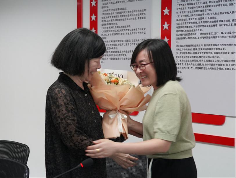 仪式最后,贾孝霞老师代表公司全体教师向华卫令老师献上一束鲜花,并与华老师深情拥抱。荣休仪式在热烈的掌声和祝福声中落下帷幕。
